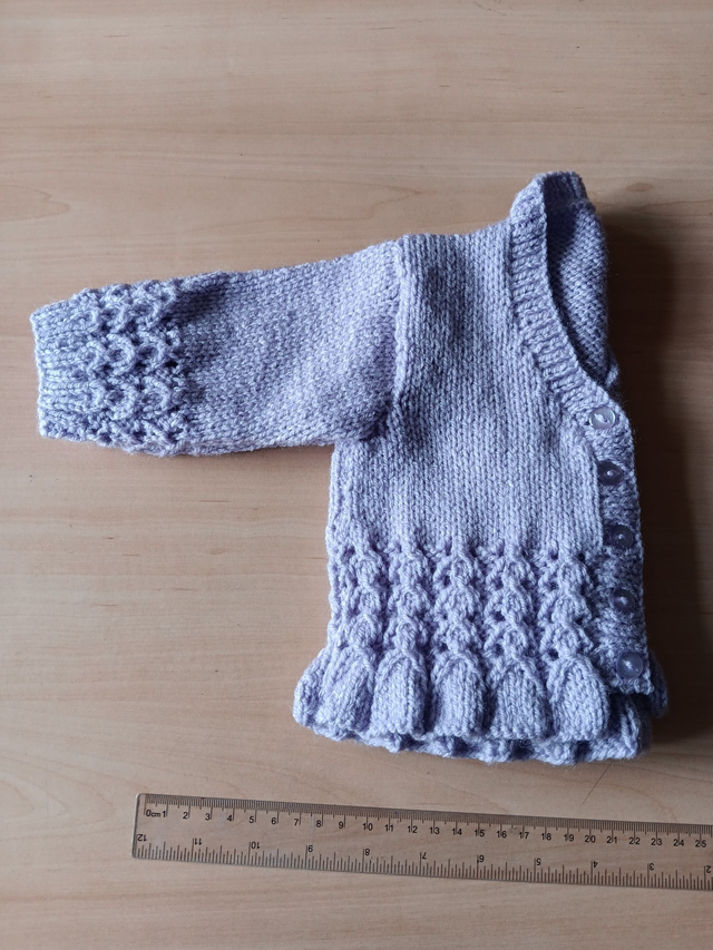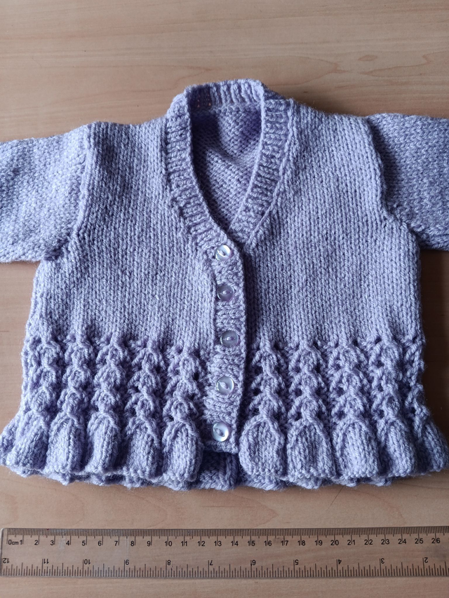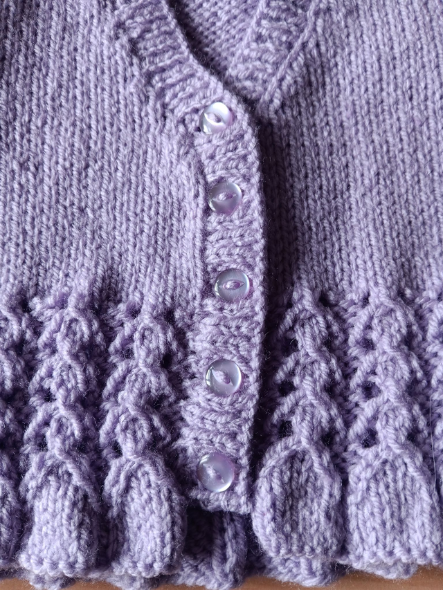 Hand Knitted Children's Peplum Cardigan. Lilac Colour (the close up photo's are the best representation)