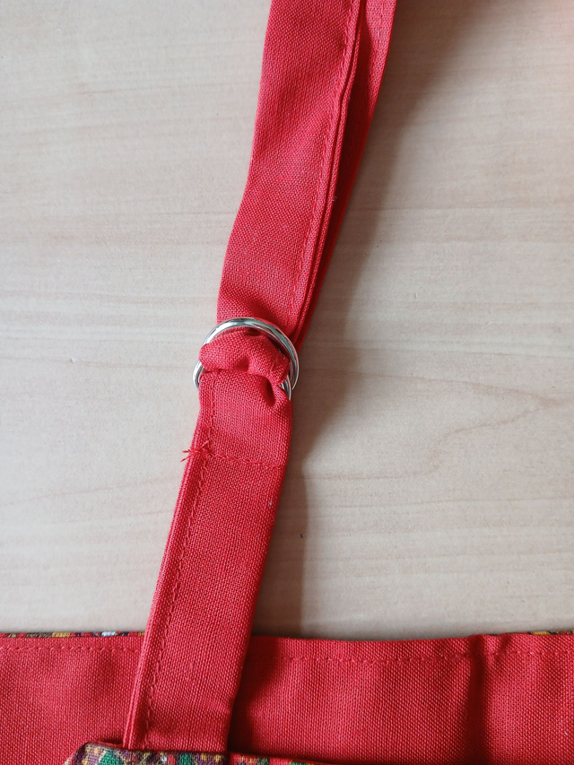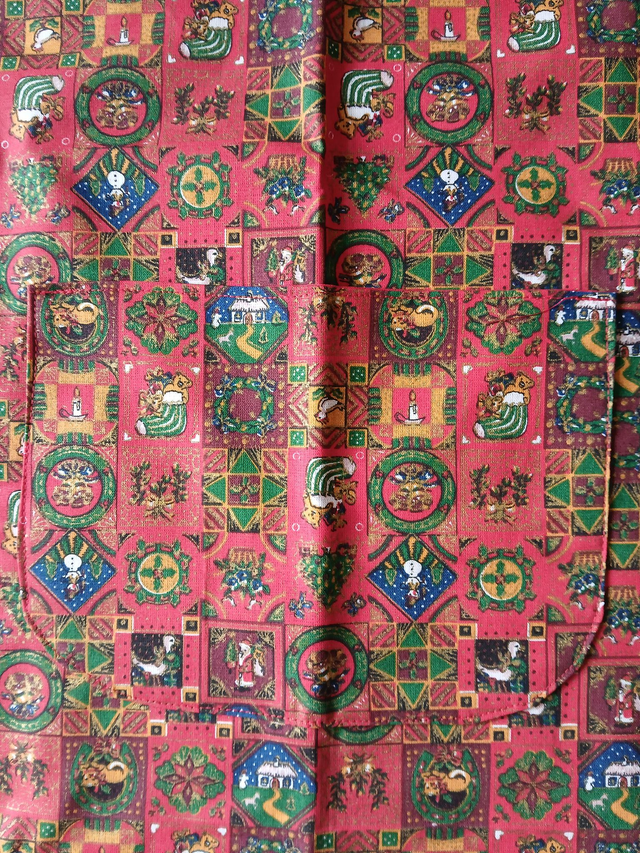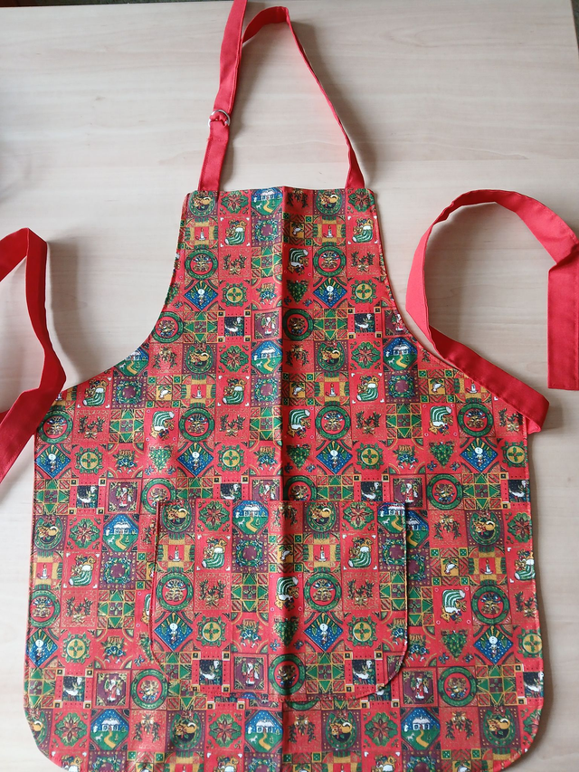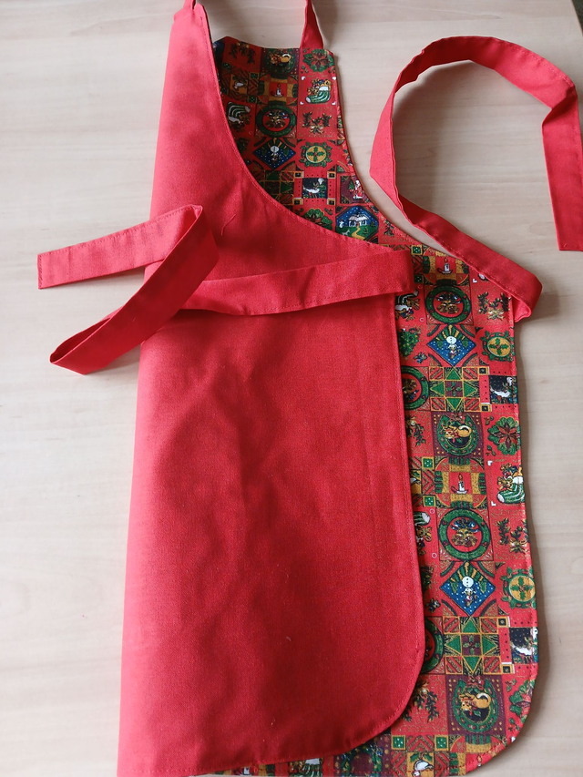 Apron made in Festive print Cotton Fabric with red cotton fabric lining.